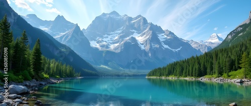 Naklejka premium Majestic Mountain Landscape with a Crystal Clear Alpine Lake