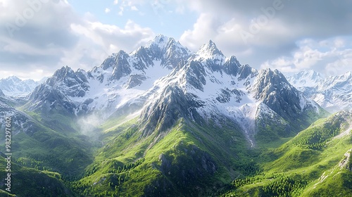 © Waqas, Fototapeta premium Majestic Mountain Landscape with Mist