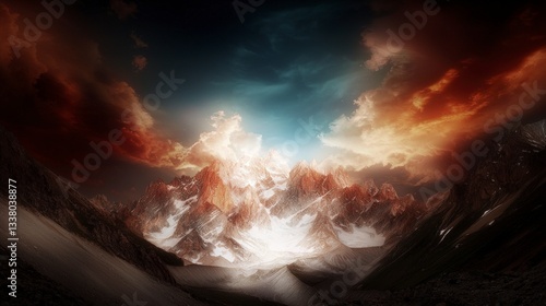 © Oat_Photo, Naklejka premium Majestic Mountain Panorama Dramatic Sky High Resolution Landscape
