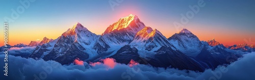 © gen_pick, Obraz premium Majestic Mountain Peak at Sunset in Glowing Colors