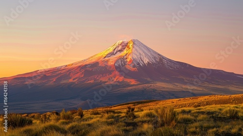 Fototapeta premium Majestic Mountain Peak Bathed in Golden Light at Sunrise