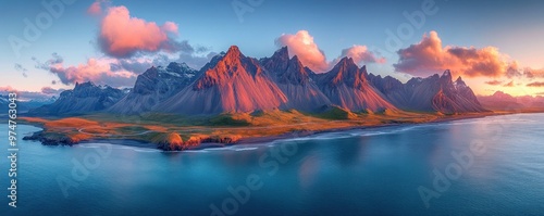 © gita, Obraz premium Majestic Mountain Range at Sunset