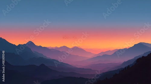 © AbulKalam, Fototapeta premium Majestic mountain range at sunset with vibrant sky Image