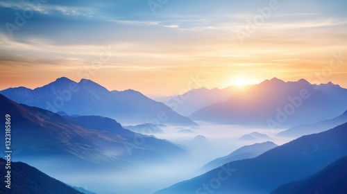 © Achmad Khoeron, Fototapeta premium Majestic mountain range bathed in the vibrant hues of sunset