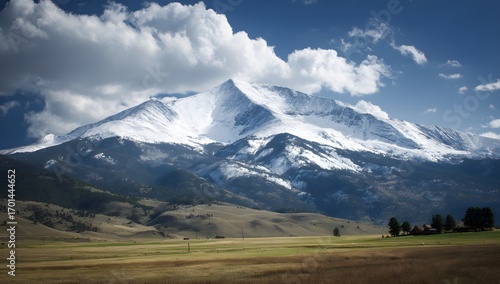 © Bubblesky, Fototapeta premium Majestic Mountain Range Peaks Under Cloudy Heavens