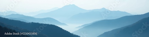 Obraz premium Majestic mountain range shrouded in thick fog, vast, quiet, misty