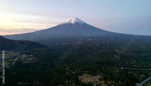 © Samaran5y, Fototapeta premium Majestic mountain range with a snow-capped peak dominates the landscape, showcasing the serene beauty of the natural world.