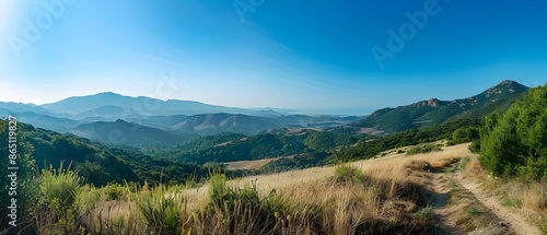 Fototapeta premium Majestic Mountain Range with Serene Panoramic Vista in Nature Landscape