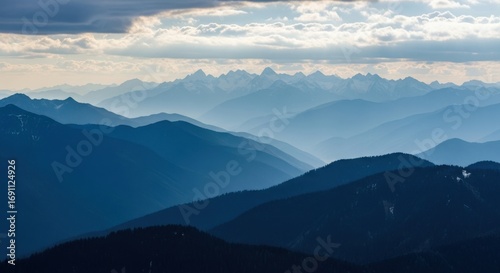 Fototapeta premium Majestic Mountain Ranges Fade into the Hazy Horizon