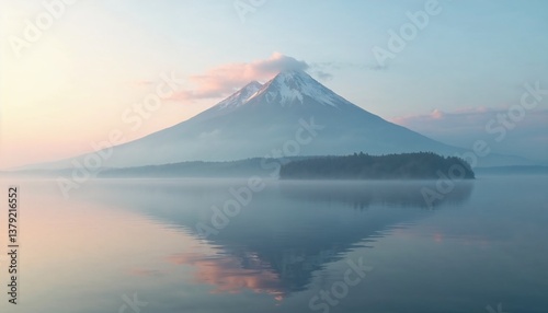 © Angavlan, Fototapeta premium Majestic mountain reflection over calm water at sunrise