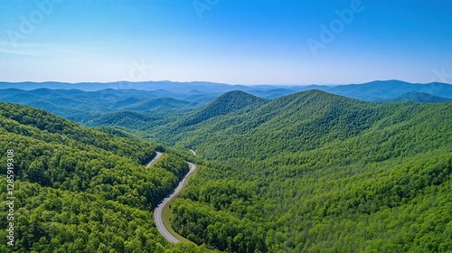 © Banyu, Fototapeta premium Majestic Mountain Road Winding Through Lush Green Landscape