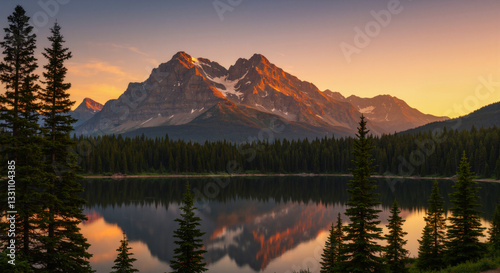 © Mundir, Fototapeta premium Majestic Mountain Sunset Landscape