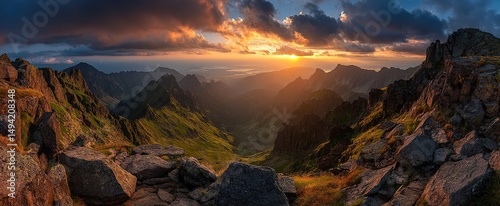 © Ananta, Obraz premium Majestic Mountain Sunset Panorama