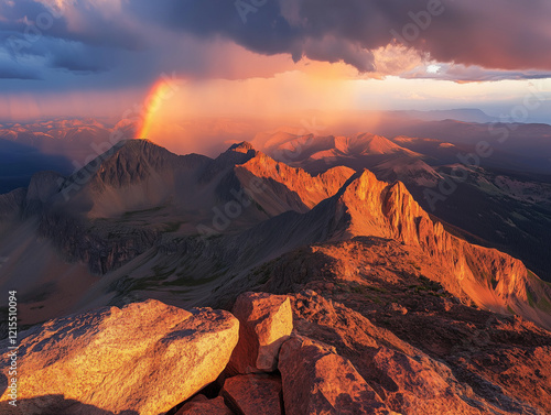 Fototapeta premium Majestic Mountain Sunset with Rainbow