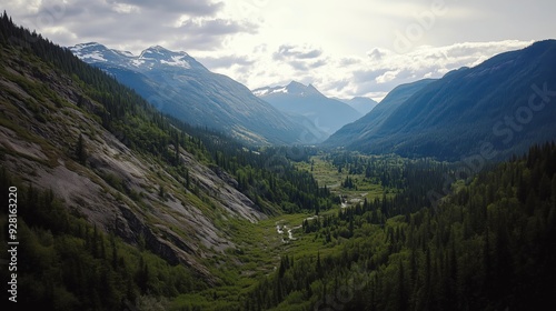 Fototapeta premium Majestic Mountain Valley with Lush Greenery and River