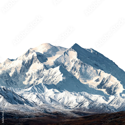 © Buse, Fototapeta premium Majestic Mountain Vista: An imposing snow-capped mountain range stands proudly under a clear sky, showcasing nature's raw, breathtaking beauty in an awe-inspiring panorama.