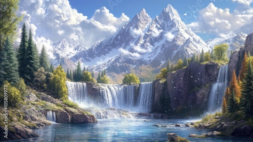 © Aulia, Fototapeta premium Majestic Mountain Waterfall