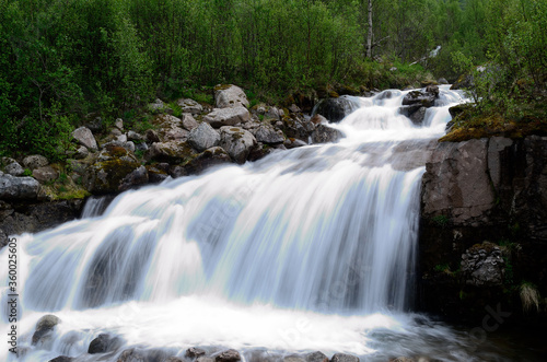 © Arcticphotoworks, Fototapeta premium majestic mountain waterfall in northern norway