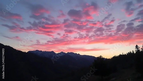 Fototapeta premium Majestic mountains and a vibrant sky create a serene and breathtaking landscape