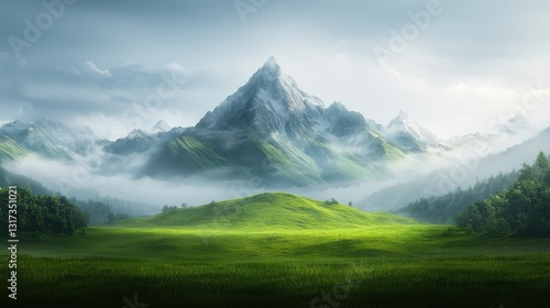 © tawat, Fototapeta premium Majestic mountains and lush green meadows, breathtaking nature landscape photography