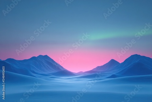 © Larisa, Fototapeta premium Majestic mountains bathed in ethereal hues under shimmering Nort