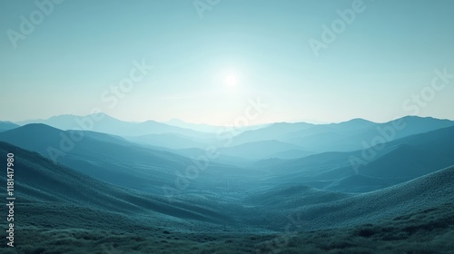 © olegganko, Obraz premium Majestic mountains bathed in soft blue hues during sunrise light