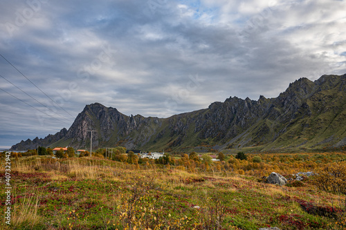 © Fridimedia, Naklejka premium Majestic mountains next to a road in Norway