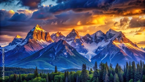 Obraz premium Majestic mountains rise against a canvas of deep blues and purples, as the...