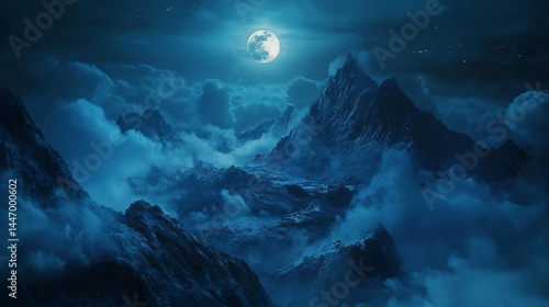 © Indian, Fototapeta premium Majestic mountains shrouded in a mystical night sky.