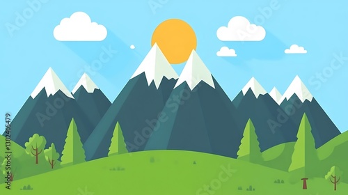 © Muldiawan, Obraz premium Majestic Mountains Under A Sunny Sky With Lush Green Valley