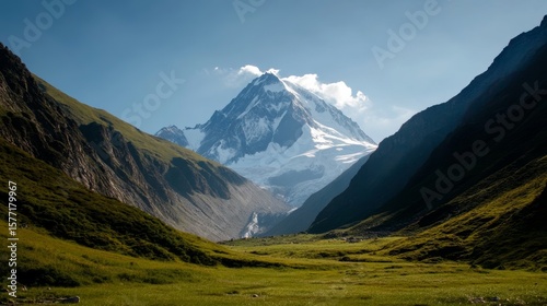 Fototapeta premium majestic mountains under blue sky, snow peaks, clear weather, no people