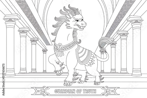 Naklejka premium Majestic mythical creature, guardian of temples.