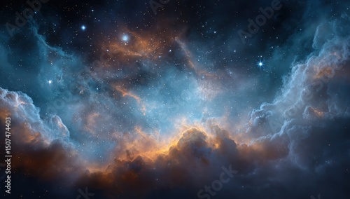 Fototapeta premium Majestic Nebula Space Scene Starry Night Sky with Cosmic Clouds and Glowing...