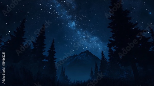 Fototapeta premium Majestic Night in the Mountains: A Starry Sky over a Silhouetted Forest