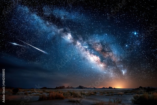 Fototapeta premium Majestic Night Sky Milky Way Galaxy Starscape Desert Landscape