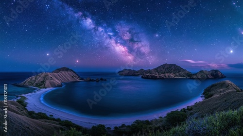 Obraz premium Majestic Night Sky Over Komodo Islands with Aurora Borealis Glow