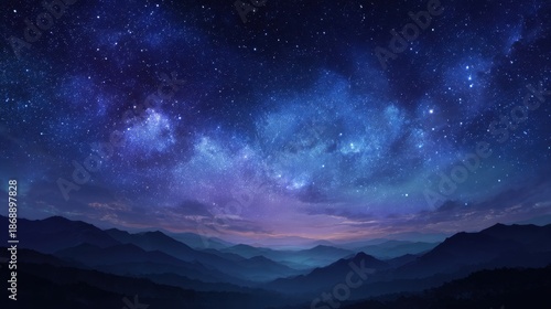 Fototapeta premium Majestic night sky over mountain range with vibrant stars and milky way.