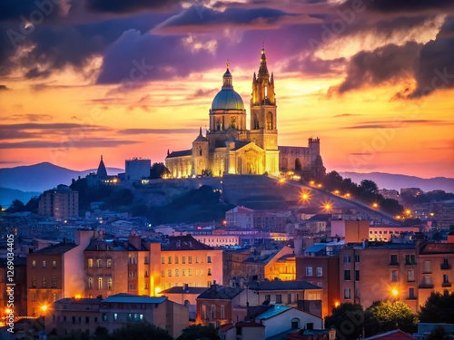 © Danicha, Fototapeta premium Majestic Notre Dame de la Garde Basilica, Marseilles, France - Panoramic View with Bokeh