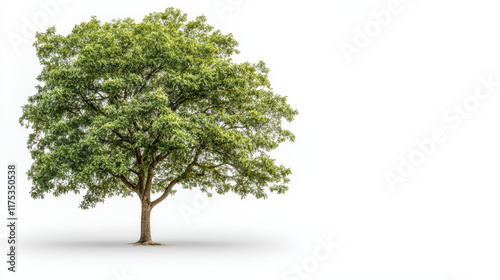 © siraphol, Obraz premium Majestic oak tree with lush green leaves isolated on white background