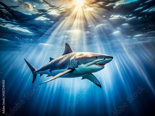 © Nopparat, Fototapeta premium Majestic Ocean Predator: Blurred Shark Background Stock Photo