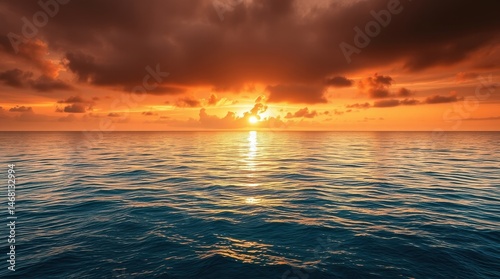 © AR Design, Obraz premium Majestic Ocean Sunset with Golden Sky and Calm Waves