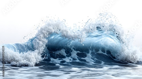 Obraz premium Majestic ocean wave with white foam cresting and breaking on a sunny day,...