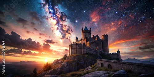 © Four888, Fototapeta premium Majestic Old Castle Time-Lapse: Epic Sunset to Starry Night