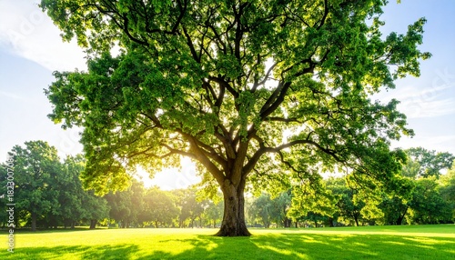 Fototapeta premium Majestic old oak tree bathed in beautiful morning sunlight