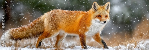 Fototapeta premium Majestic orange-furred fox gracefully navigating through a pristine...