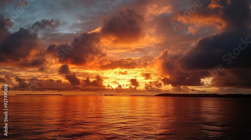 © PalaG, Obraz premium Majestic Orange Sunset Casting Vibrant Hues Over the Ocean