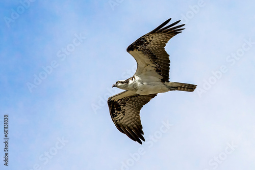 Fototapeta premium Majestic Osprey flying overhead with wings open