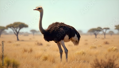 Naklejka premium Majestic Ostrich Standing in Natural Savanna Grassland Setting