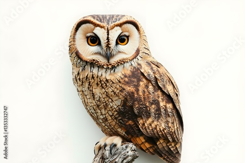 © Fariha, Naklejka premium Majestic Owl Against White Background with Intense Gaze