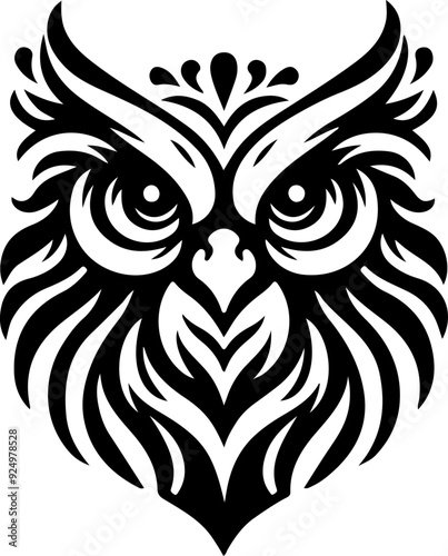© Arfin, Fototapeta premium Majestic Owl heads black and white vector silhouette illustration 15